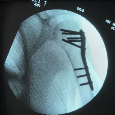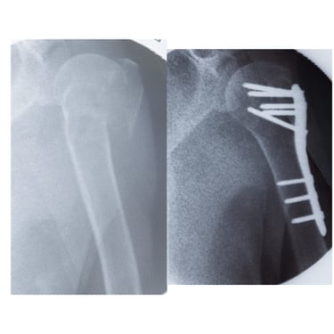 Paciente fémina de 70 años de edad, muy activa e independiente, presenta fractura de húmero proximal multifragmentada. Se opta por tratamiento quirúrgico en el cual se obtienen resueltados excelentes. Actualmente en fisioterapia y realizando actividades de la vida diaria sin limitaciones